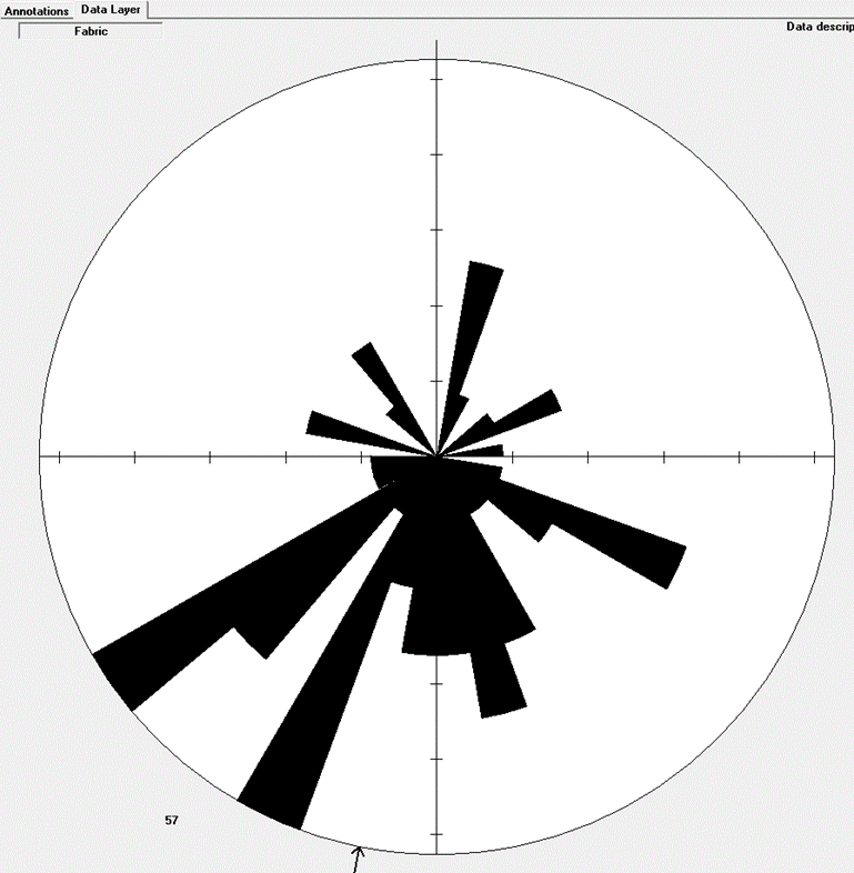 Figure 8 – A rose diagram showing the orientation of the sampled boulders