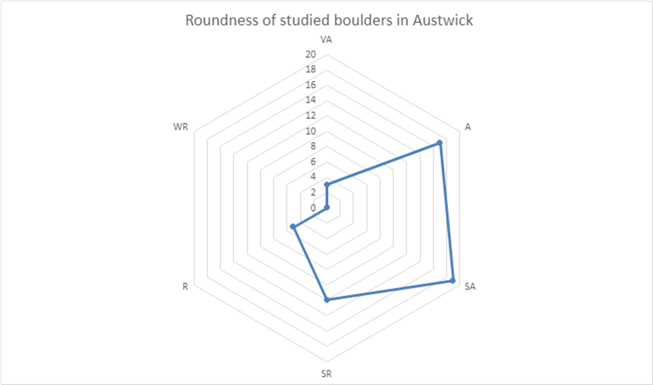 Figure 3 – A graph showcasing the roundness of the studied boulders.