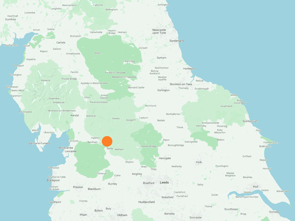 Figure 1 – Map showcasing the location of Austwick. Picture from Paul Beal